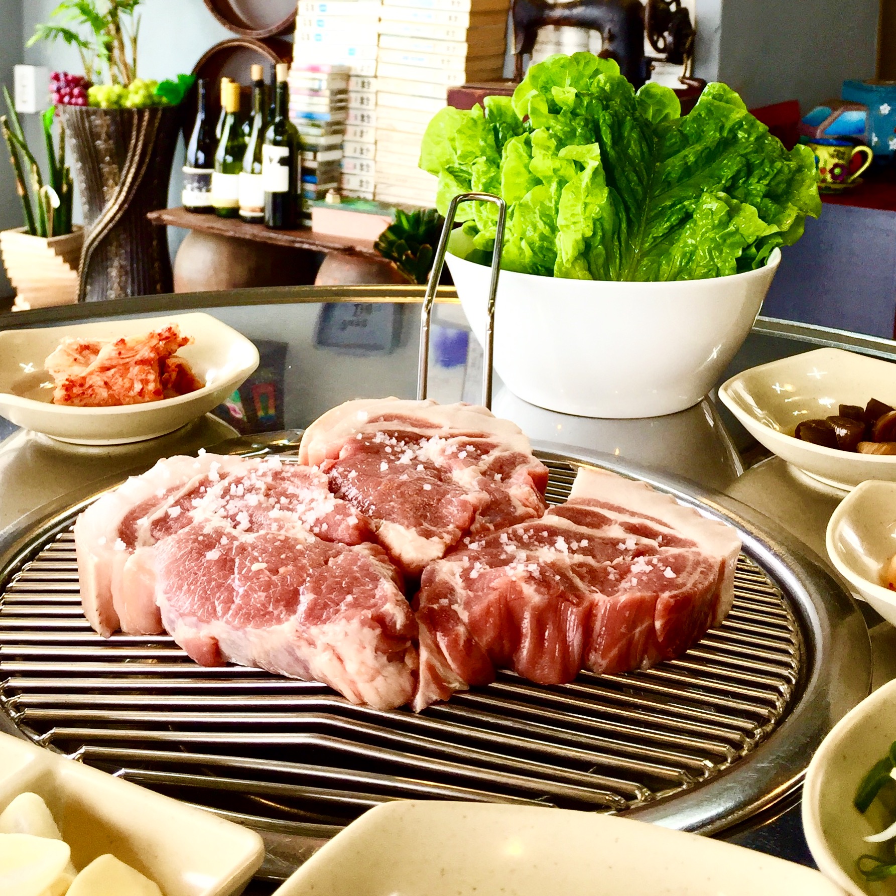 연탄불로 고기를 굽기에 연탄불을 붙이고 화력을 올리는데 시간이 많이 걸립니다.
