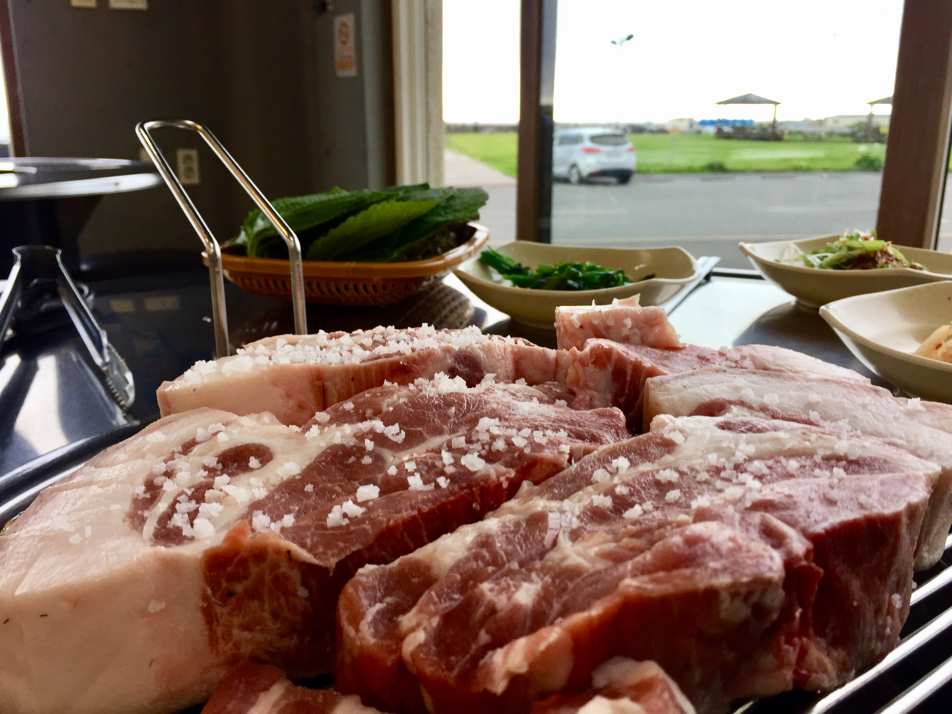 어제 먹었던건 그냥 고기고 여긴 정말 제주흑돼지네요. 와 왜이렇게 달라요?"