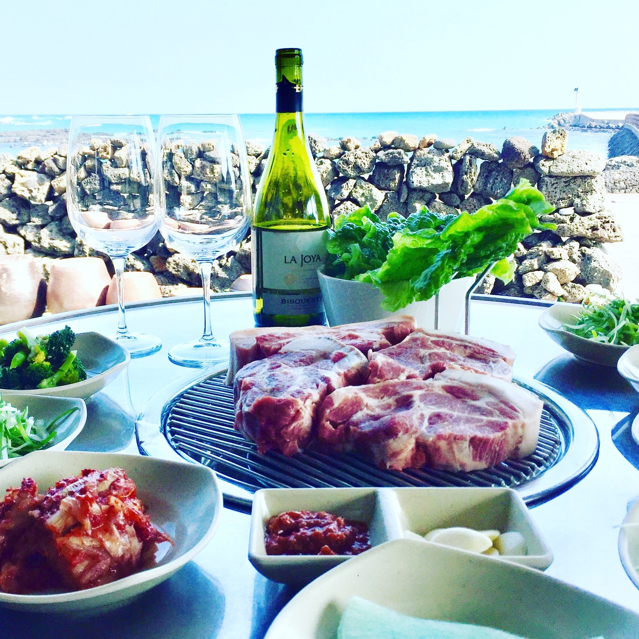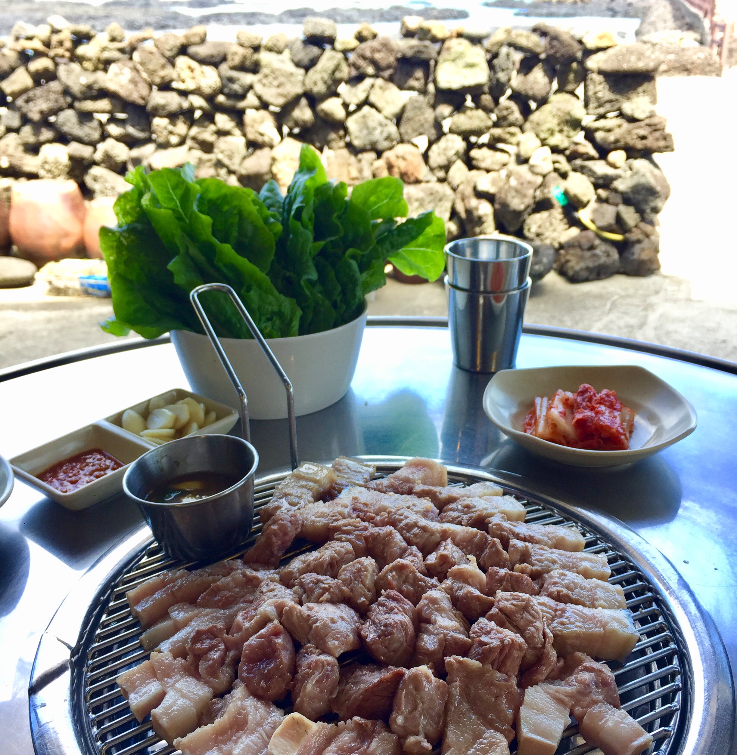 어제 먹었던건 그냥 고기고 여긴 정말 제주흑돼지네요. 와 왜이렇게 달라요?"