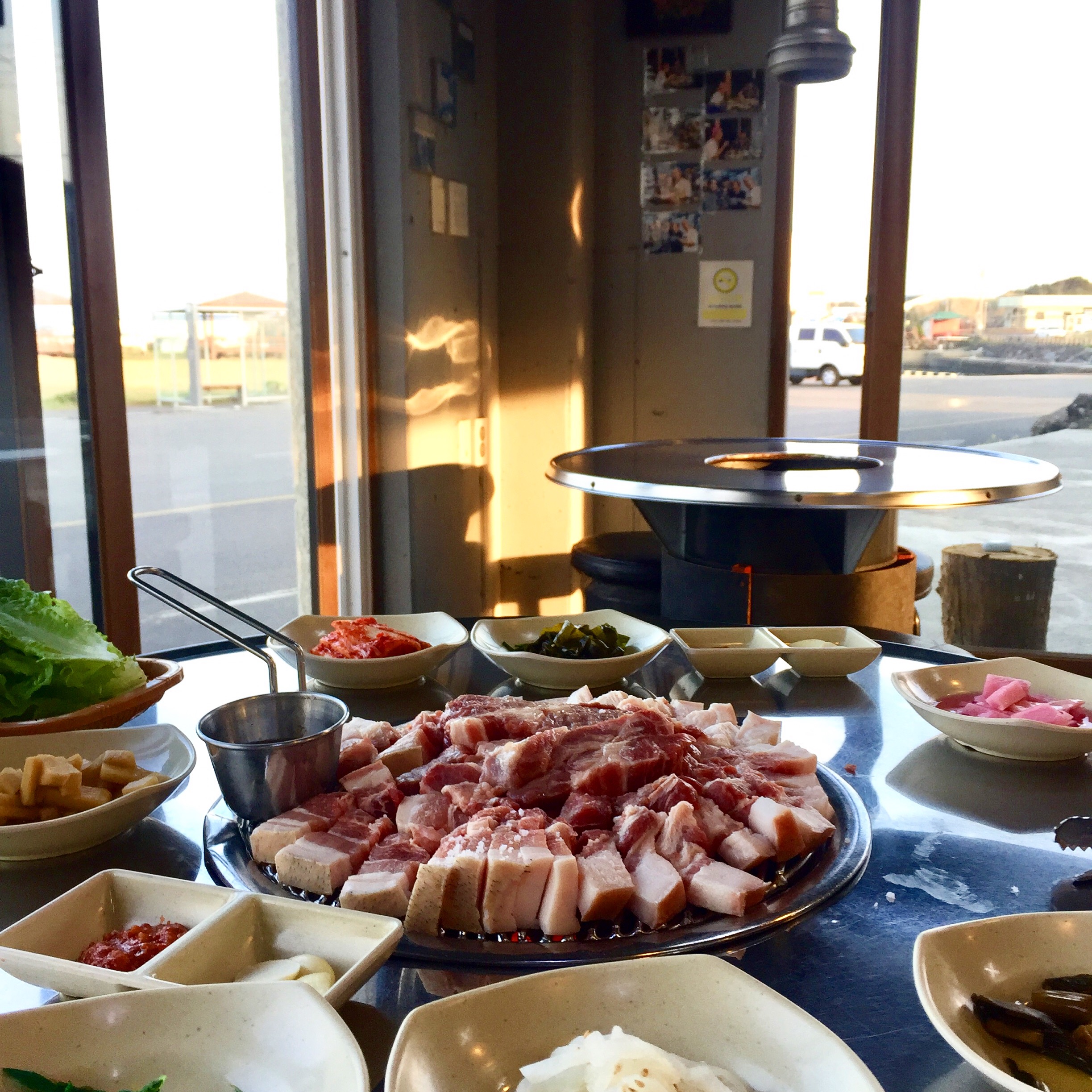성산읍 온평리 흑돼지 연탄구이집.