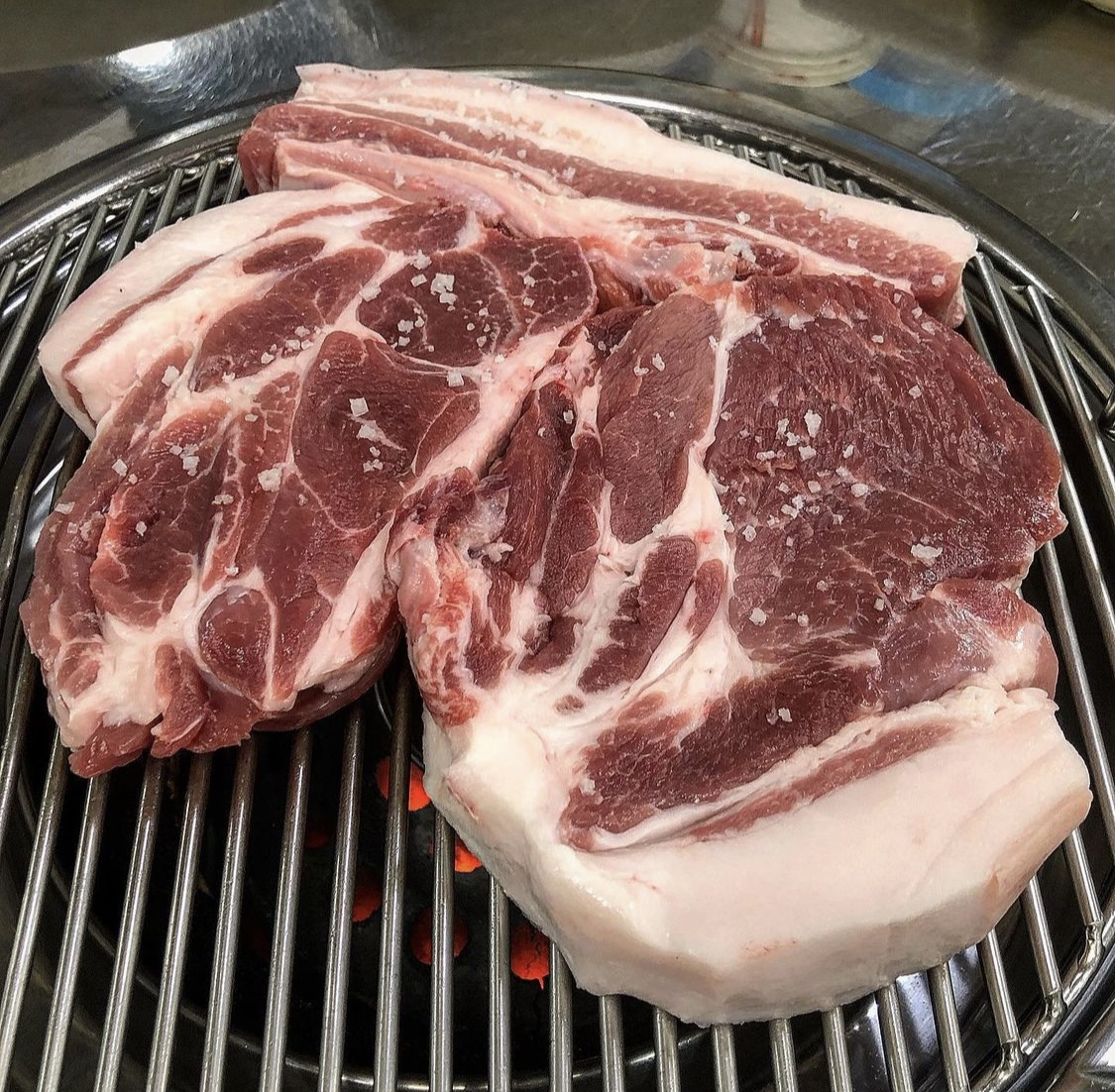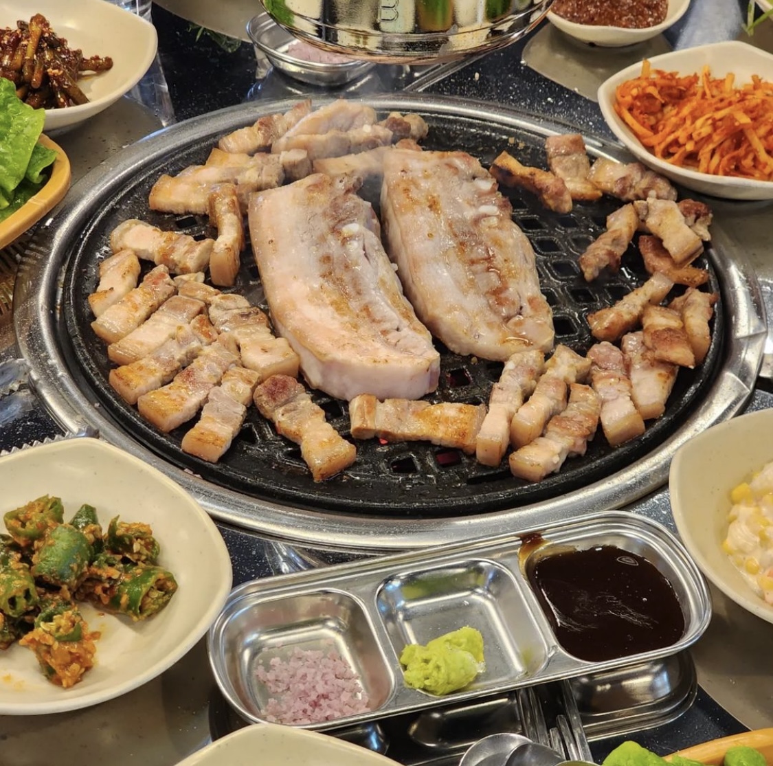 오겹살은 등심 아래쪽복부 부위로 근육과 지방이 층을 이루며, 식감이 부드럽고 씹을수록 고소하며 풍미가 좋습니다.